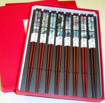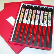 Japanese design chopsticks, 1 box contains 1 set of 8 pairs, $18 $15 each box. Also available in 5 pairs a box, $10 $8 each box of 5-pair. Great for gift!
