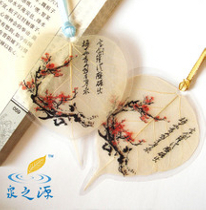 Dry leaf bookmarker painted with Mei flower and Chinese calligraphy, 1 package contains 1 bookmarker,